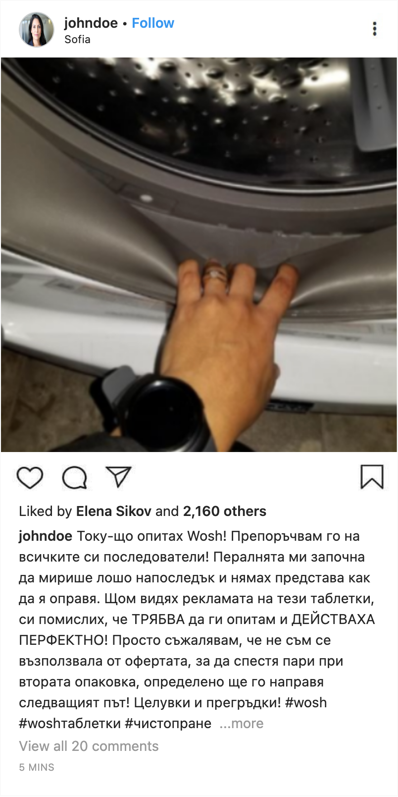“Понякога пералнята ми има гнила миризма, ако оставя прането в нея твърде дълго... Wosh оправи проблема, наистина го препоръчвам.”
